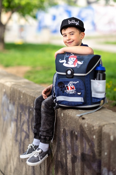 • Školní aktovka s motivem pirátů na přední části, vhodná pro žáky 1.–2. třídy ZŠ. Aktovka byla úspěšně testována v ITC Zlín.