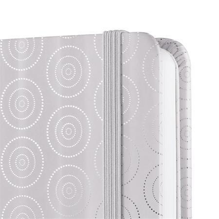Exkluzívny zápisník Jolie Cashmere Charm je uzatvárateľný na gumičku, vybavený záložkou, pútkom na pero a praktickým vreckom na zadnej strane. Posledných 16 strán je perforovaných. Zápisník má tvrdé, matné dosky s lesklými detailmi.