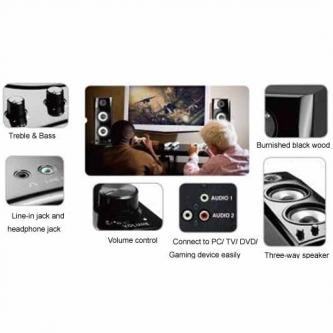 - Dřevěné stereo reproduktory