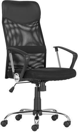 Vysoké, sieťované operadlo s koženkou na opierke hlavy Sieťované čalúnenie sedadla Fixné opierky rúk Nastaviteľná hojdacia mechanika Chrómovaný plynový piest Chrómovaný podstavec Nosnosť: 110 kg Celková výška: 107-115 cm Výška sedadla: 44-52 cm C