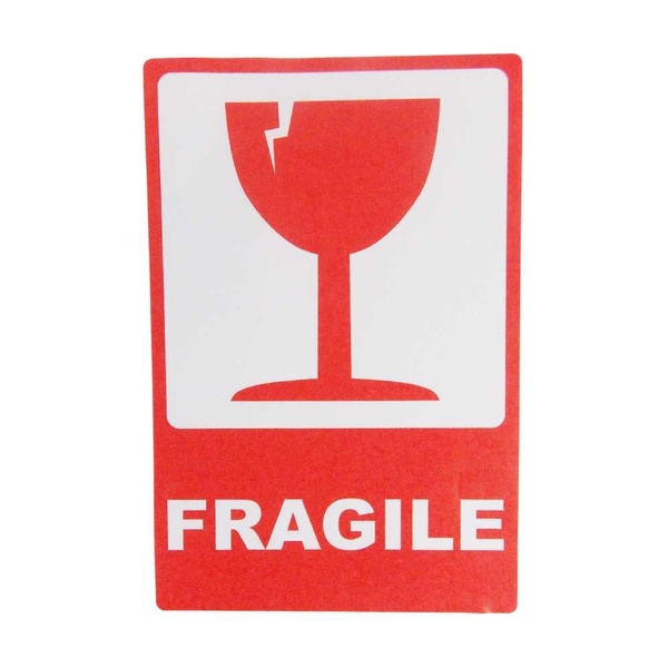 Samolepiace prepravné etikety s označením FRAGILE (v preklade „krehké“ alebo „rozbitné“) slúžia na viditeľné označenie zásielok, ktoré vyžadujú opatrné zaobchádzanie počas prepravy. Výrazný symbol červeného pohára jasne upozorňuje dopravcov aj skladníkov na krehký obsah balíka.
