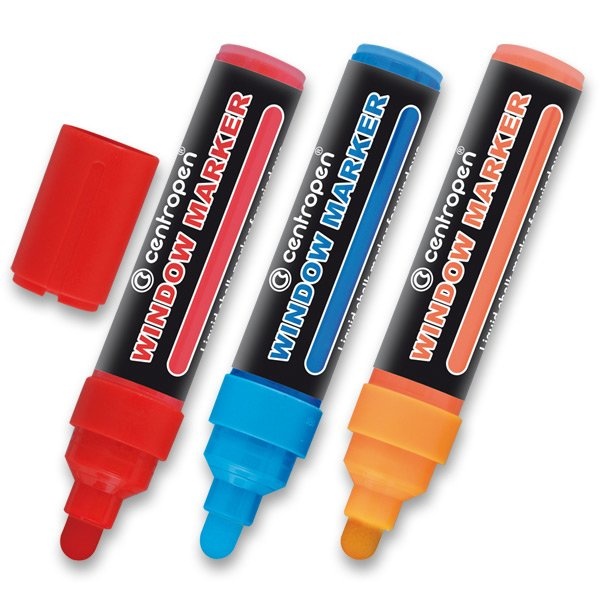 Celý text →Kriedový fix na sklo Centropen JUMBO WINDOW 9121 je kvalitný kriedový popisovač s tekutou kriedou, ideálny na písanie na sklo, výklady, zrkadlá, plast a ďalš...