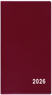 Jednoduchý a praktický měsíční diář vyrobený z jemného hladkého materiálu s polomatným povrchem v barvě bordó. Ideální pro každého, kdo si oblíbil měkkou šitou vazbu. jemný hladký materiál PVC,potisk roku bílou barvou, šitá vazba V1, ofset, 70g/m2
