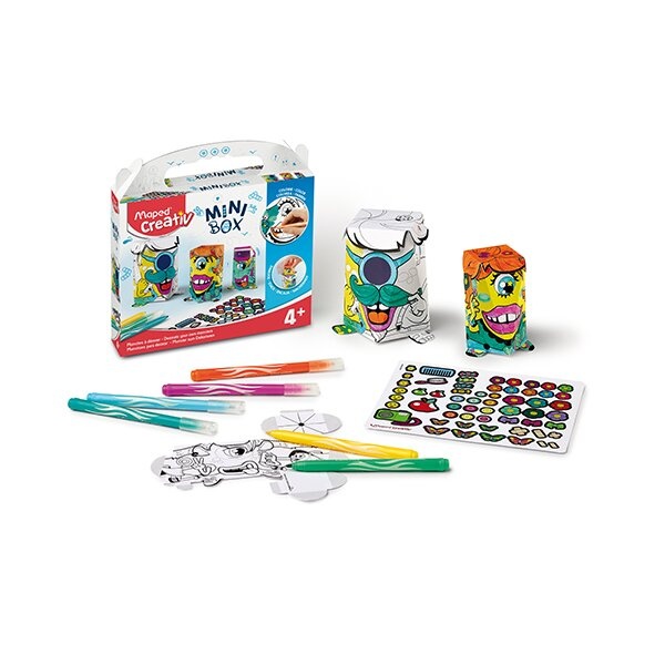 Súčasťou je 6 fixiek, hárok so samolepkami a 3 rôzne veľké krabičky, ktoré je možné zasunúť do seba.
