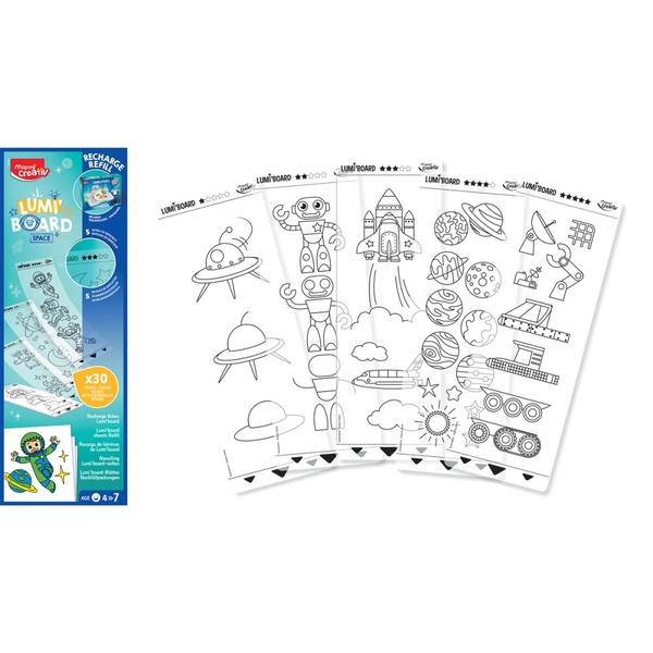 Náhradní náplň do kreativní sady Lumi Board s motivem vesmíru potěší všechny malé objevitele a milovníky kreslení. Díky různým úrovním obtížnosti d...