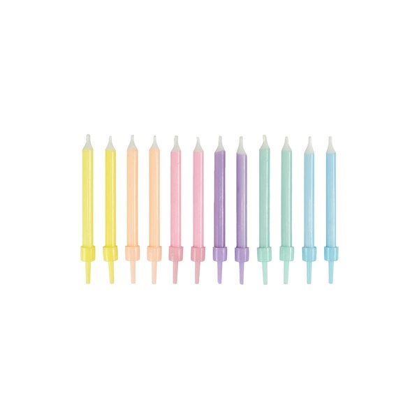 Narodeninové sviečky v pastelových farbách – 12 ks sú klasickou dekoráciou na narodeninovú tortu pre detské aj dospelé oslavy. Jemné pastelové farby dodajú torte elegantný a veselý vzhľad.