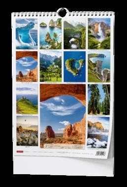 Nástěnný kalendář s obrázky nejkrásnějších míst na světě. Papír: křída lesk, 135 g/m2 Obálka: křída lesk 150 g/m2 Karton je z kvalitní bílé lepenky Dvojitá kovová spirála "twin wire" po celé šířce kalendáře s háčkem pro zavěšení Baleno v průhledném sáčku s průhmatem.