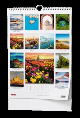 Nástěnný kalendář s nádhernými obrázky z celého světa. Papír: křída lesk, 135 g/m2 Obálka: křída lesk 150 g/m2 Karton je z kvalitní bílé lepenky Dvojitá kovová spirála "twin wire" po celé šířce kalendáře s háčkem pro zavěšení Baleno v průhledném sáčku s průhmatem.