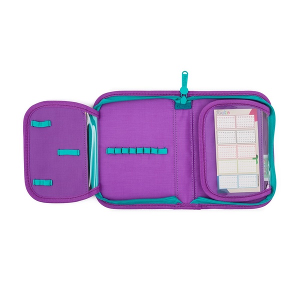 Jednopatrový školní penál s 2 vnitřními chlopněmi je ideální volbou pro přehledné uložení psacích potřeb. Obsahuje 25 gumových poutek, která bezpečně udrží tužky, pera nebo pastelky na svém místě.
