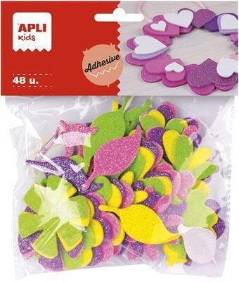 Papírenské zboží - Pěnovka, samolepící, s glitry, tvary květin, mix barev, APLI "Eva Sheets"Magnifier ico