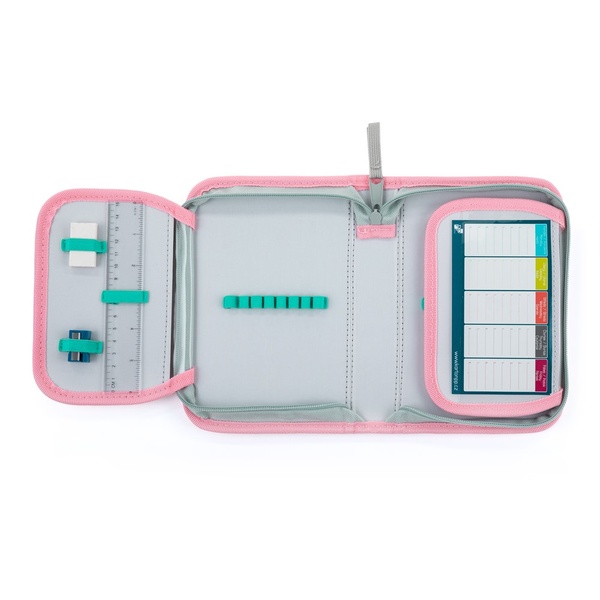 Jednopatrový školský peračník s 2 chlopňami, prázdny obsahuje 25 gumových pútok na uchytenie písacích potrieb.