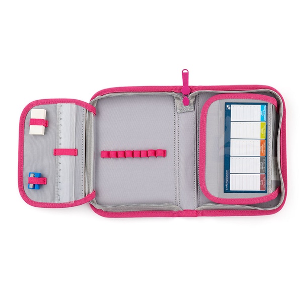 Jednopatrový školský peračník s 2 chlopňami, prázdny obsahuje 25 gumových pútok na uchytenie písacích potrieb.