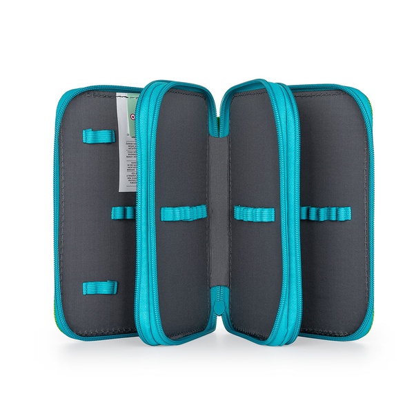 Penál má pevný zips s veľkými ťaháčikmi pre ľahkou manipuláciu. Jedno patro je opatrené priehľadnou prihrá