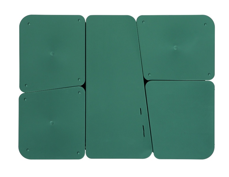 Kompaktná stolná kancelárska sada vyrobená z recyklovaných materiálov zahŕňa 7 ks vybavenia v zelenej farbe: