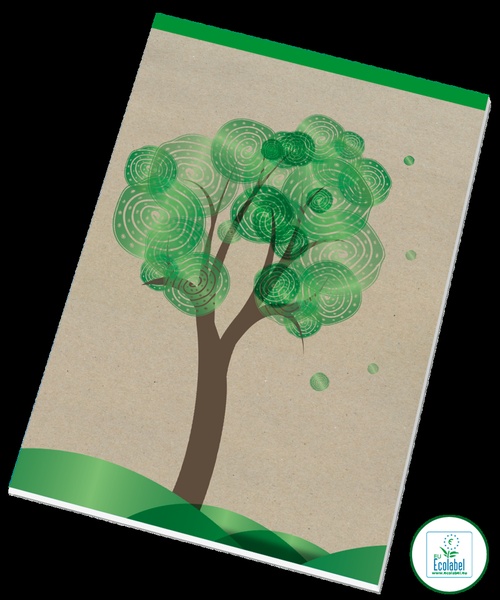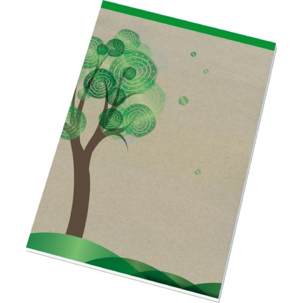 Univerzálny štvorčekový blok vyrobený z recyklovaného papiera s perforáciou pre ľahké odtrhnutie listov. Zošitý skobami na kratšej strane, doplnený chrbtovou páskou pre vyššiu odolnosť.