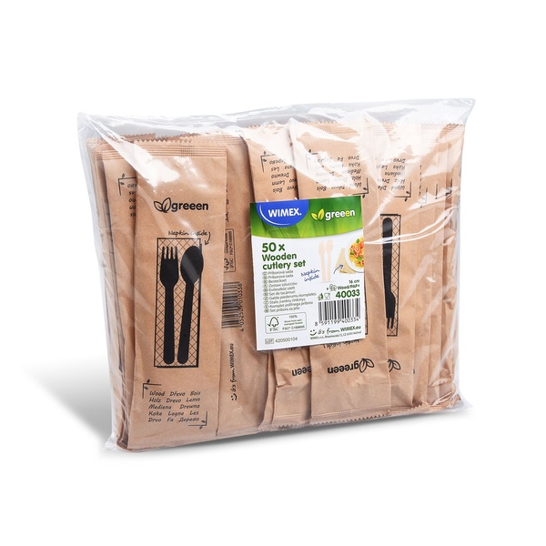 Papírenské zboží - Příborová sada (dřevo FSC 100%) vidlička-lžíce+ubrousek [50 sad]Magnifier ico