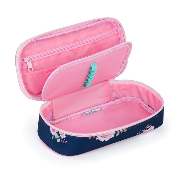 Školské puzdro etue je vybavené pevnými zipsami, vreckom na zips a klopou s pevnými pútkami po oboch stranách.