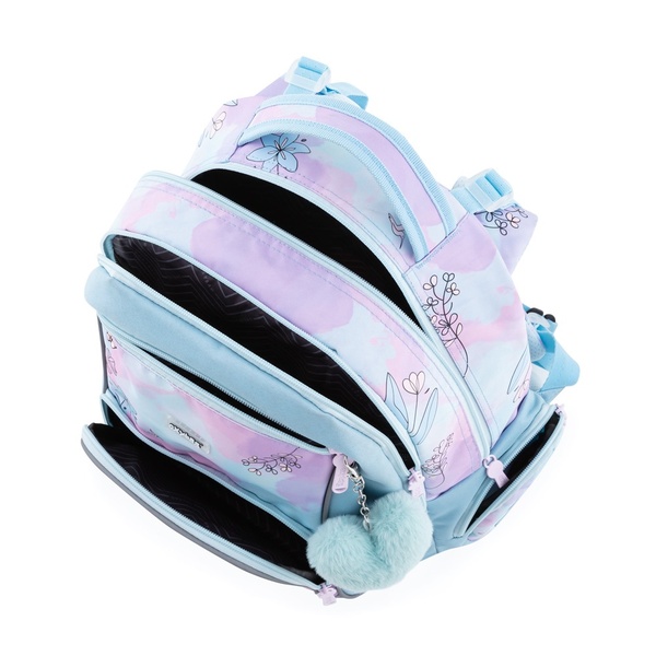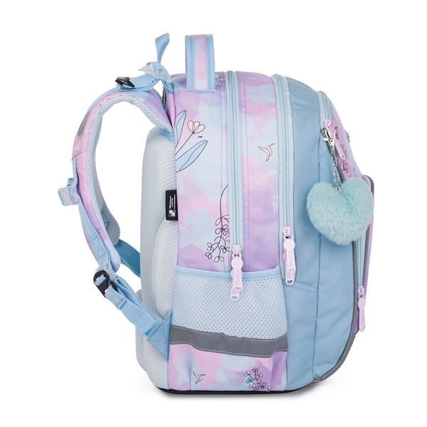 Školský batoh OXY GO zaujme moderným dizajnom a praktickými detailmi. Má anatomicky tvarovaný a priedušný chrbát, nastaviteľné ramenné popruhy a pridané háčiky na uchytenie dlhších popruhov. Vnútorné vrecká poskytujú dostatok miesta na učebnice, zošity a ďalšie potreby. Pevné nepremokavé dno chráni obsah pred ušpinením aj pretečením. Bočné vrecká – jedno na zips a druhé otvorené – sú ideálne napríklad na fľašu s pitím. Reflexné prvky zvyšujú bezpečnosť dieťaťa na cestách.