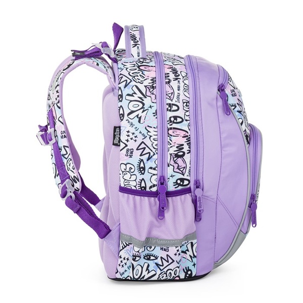 Vnútorné vrecká ponúkajú dostatok priestoru pre učebnice, zošity aj ďalšie školské potreby. Pevné nepremokavé dno chráni obsah pred ušpinením aj pretečením. Po stranách nájdete dve vrecká – jedno na zips a jedno otvorené, napríklad na fľašu. Reflexné prvky zvyšujú bezpečnosť dieťaťa na ceste do školy.