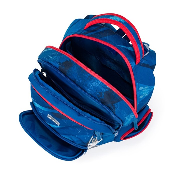 Vnútorné vrecká ponúkajú dostatok priestoru pre učebnice, zošity aj ďalšie školské potreby. Pevné nepremokavé dno chráni obsah pred ušpinením aj pretečením. Po stranách nájdete dve vrecká – jedno na zips a jedno otvorené, napríklad na fľašu. Reflexné prvky zvyšujú bezpečnosť dieťaťa na ceste do školy.