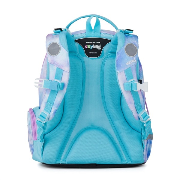 Školský batoh OXY GO je navrhnutý s dôrazom na pohodlie a správne držanie tela dieťaťa. Anatomicky tvarovaný a priedušný chrbtový panel spolu s nastaviteľnými ramennými popruhmi zabezpečuje komfort pri nosení učebníc a školských pomôcok. Praktické háčiky na popruhoch umožňujú uchytenie dlhých popruhov a pomáhajú udržať batoh prehľadne usporiadaný.