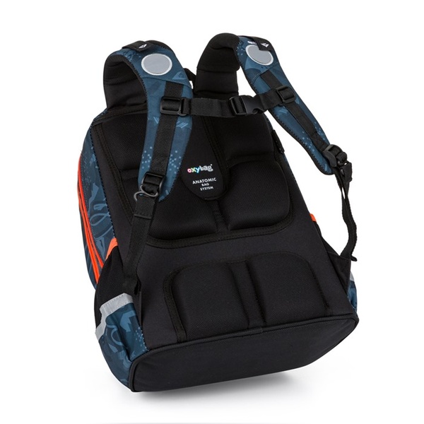 Dve komory, bočné sieťované vrecká a reflexné prvky.