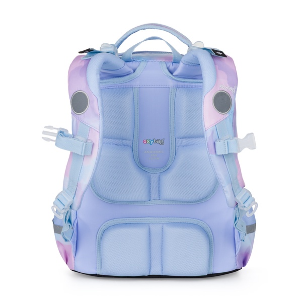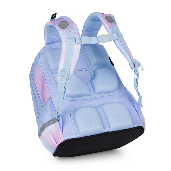 Školský plecniak OXY JUMPER má vylepšený anatomicky tvarovaný chrbtový panel a odpružený systém ramenných popruhov, vďaka ktorému sa pohodlne nosí aj pri väčšom zaťažení. Nastaviteľné ramenné popruhy, príťažné popruhy a hrudný popruh pomáhajú rovnomerne rozložiť váhu.