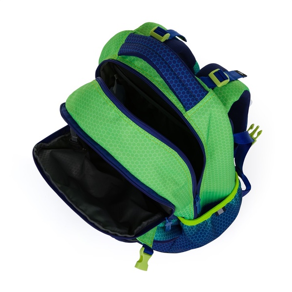 V bočných postranných vreckách na gumu je priestor na fľašu na pitie, ktorá je ľahko dostupná na doplnenie pitného režimu každého školáka.