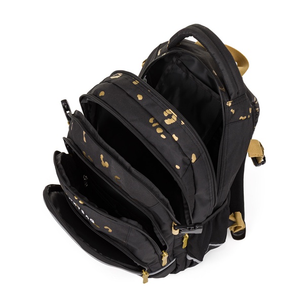 Tri komory, organizér, vrecko a priehradka na notebook.