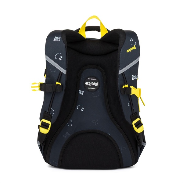 O pohodlie pri nosení sa starajú anatomicky tvarovaný priedušný chrbát, nastaviteľné ramenné popruhy a hrudný popruh. Spevnené nepremokavé dno chráni obsah pred vlhkosťou a reflexné prvky zvyšujú bezpečnosť dieťaťa na ceste do školy aj späť.