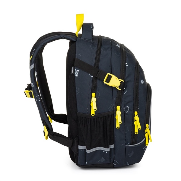 Trojkomorové prevedenie ponúka veľkorysý úložný priestor doplnený o organizér na drobnosti, vnútorné vrecko a praktickú priehradku na notebook. Bočné vrecko je ideálne na fľašu s pitím a nechýba ani držiak na kľúče alebo školský čip.