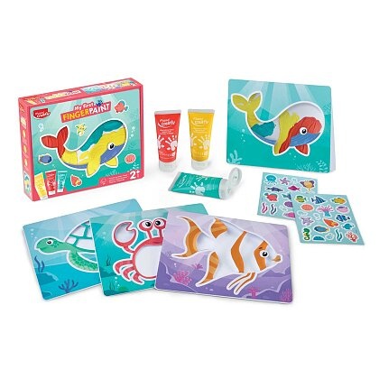 Farba sa nanáša priamo prstami do pripravenej karty, ktorá sa po zatvorení premení na farebného morského tvora. Hotový obrázok možno následne dozdobiť samolepkami, čo deťom prináša ešte viac zábavy pri tvorení.