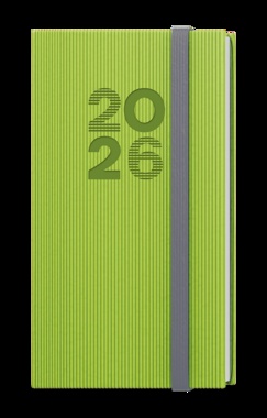 Kapesní týdenní diář v zelené barvě ze strukturovaného materiálu a s gumičkou. Jednoduchost, která neomrzí. Moderní doplněk do každé kapsy. Diář má velký prostor pro poznámky a plánování. strukturovaný materiál, ražba roku, šitá vazba V8, stužka, perforované rožky, gumička, ofset, 70g/m2