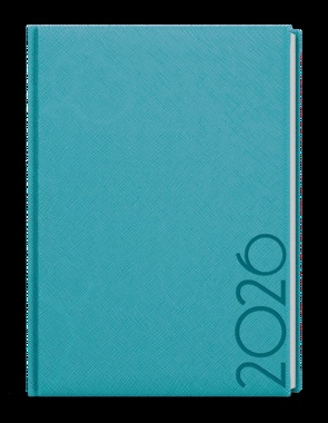 Týdenní diář v tyrkysové barvě se strukturovaným povrchem. Moderní doplněk v oblíbeném formátu. Diář má velký prostor pro poznámky a plánování. strukturovaný materiál s lesklým povrchem, ražba roku, jednostranná pěnová výplň desek, šitá vazba V8, stužka, perforované rožky, vlepená kapsa, ofset, 70g/m2