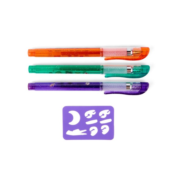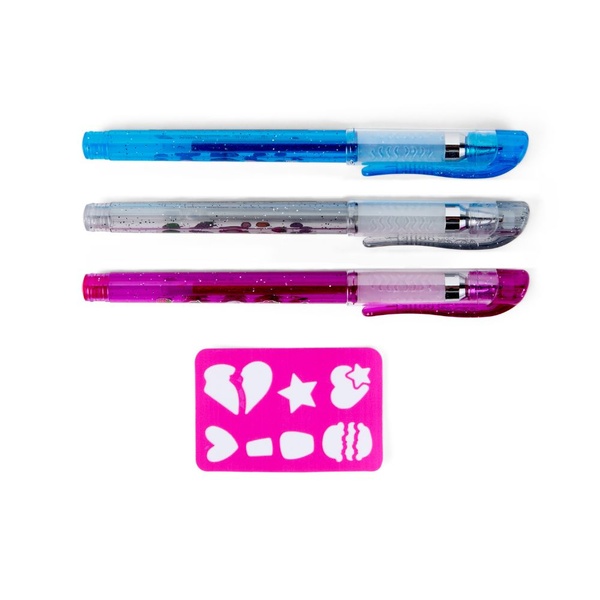 Vyber si z originálnych kombinácií: zelená, ružová a fialová alebo červená, oranžová a strieborná – a nechaj svoju fantáziu pracovať! Použi priloženú šablónu pre precízne vzory alebo si vytvor vlastný motív. Tetovanie je možné ľahko odstrániť vodou, takže môžeš tvoriť každý deň znova.