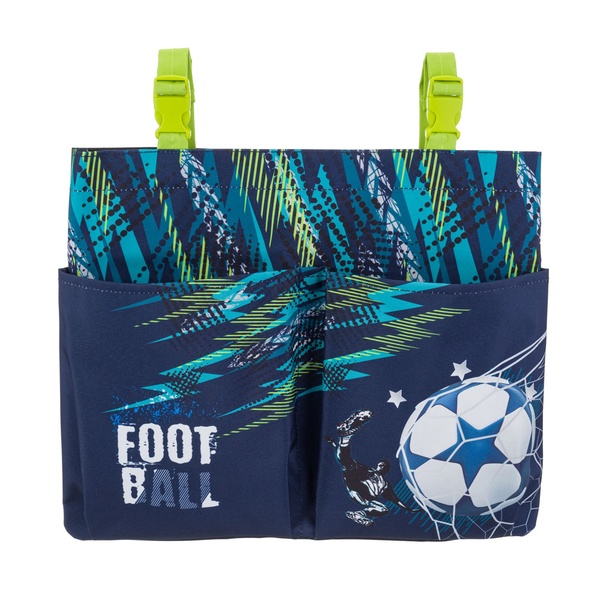 Školský vreckár na lavici s motívom futbalu.